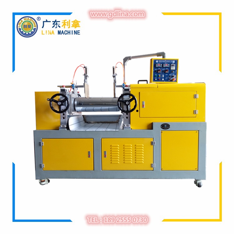 主要工作部件是兩異向向內旋轉的中空輥筒或鉆孔輥筒,裝置在操作者一面的稱作前輥,可通過手動或電動作水平前后移動,借以調節輥距,適應操作需求;后輥則是固定的,不能作前后移動。兩輥筒大小一般相同,各以不同速度相對回轉,生膠或膠料隨著輥筒的轉動被卷入兩輥間隙,受強烈剪切作用而達到塑煉或混煉的目的。開煉機也用于塑料加工等部門中。